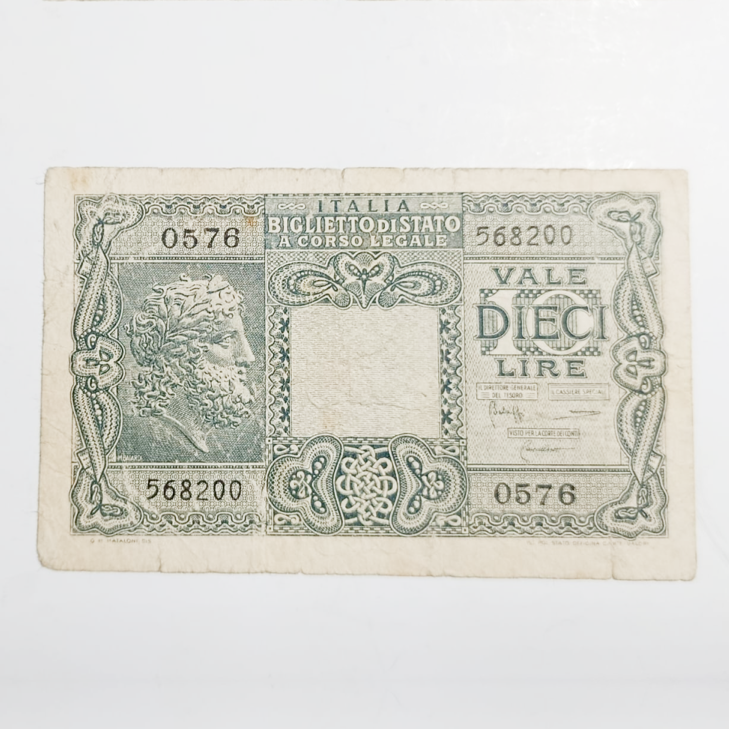 1953 Billete Italia 10 Liras Serial 0576