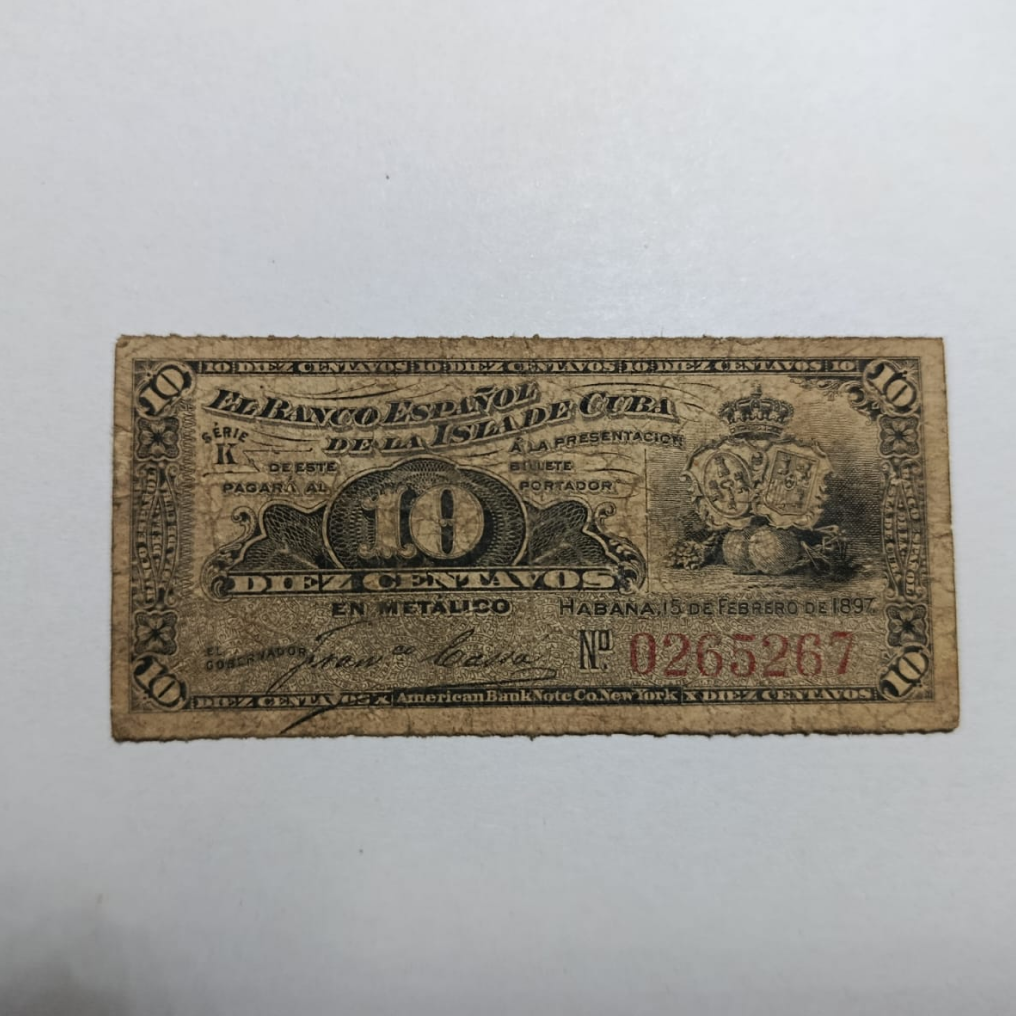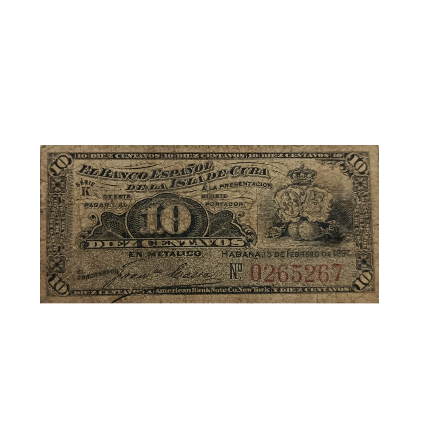 Billete de 20 pesos – Cuba, 1897, emitido por el Banco Español de la Isla de Cuba. Pieza colonial impresa por American Bank Note Company. Diseño clásico, conservación XF. Raro ejemplar previo a la independencia. Ideal para coleccionistas.