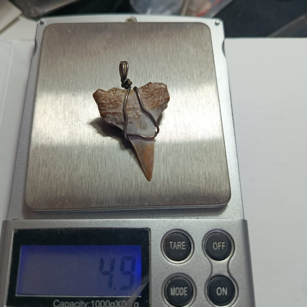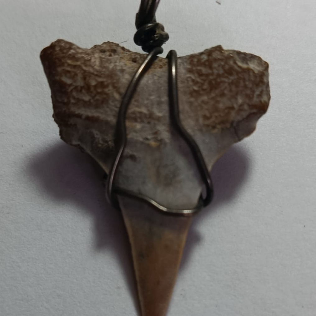 Dije elaborado con fósil auténtico de diente de tiburón, longitud 10 cm. Pieza impactante y cargada de historia natural, ideal para coleccionistas, amantes del océano o accesorios con carácter. Su textura mineralizada y forma original lo convierten en un símbolo de fuerza y evolución.