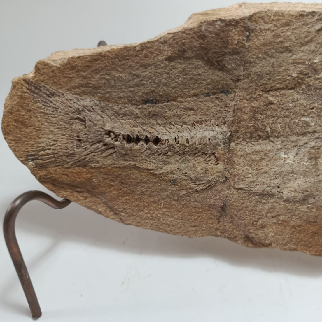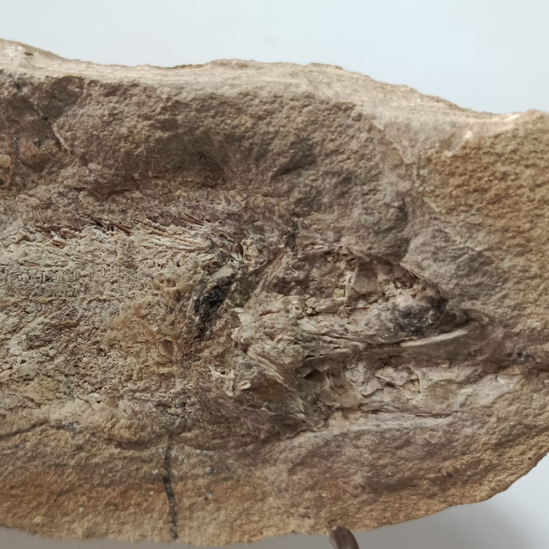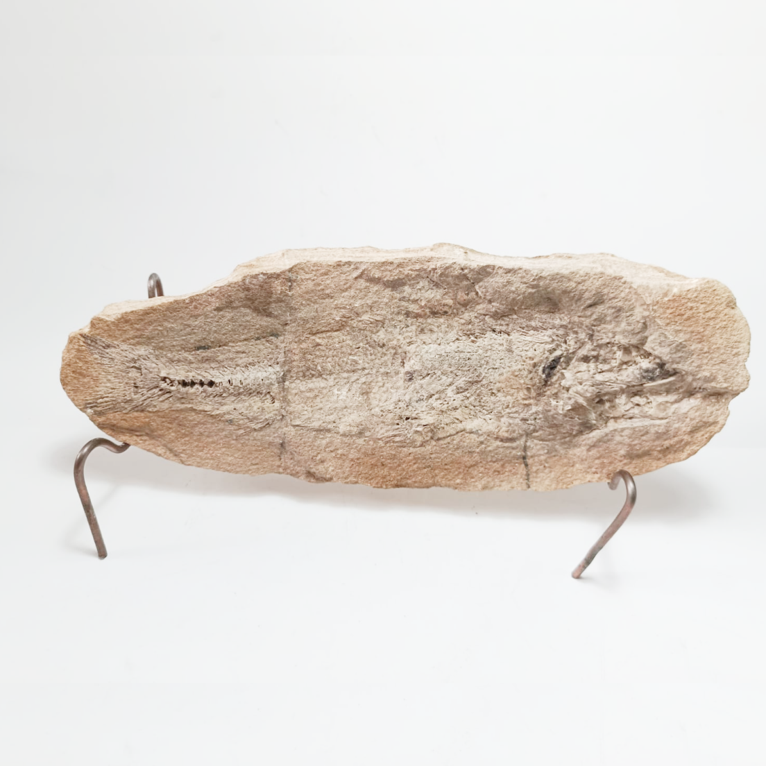 Fósil auténtico de pez de gran tamaño, con detalles anatómicos claramente definidos y textura mineralizada. Pieza única que revela la belleza y complejidad de la vida acuática prehistórica. Ideal para coleccionistas, museos o decoración temática con carácter natural y ancestral.
