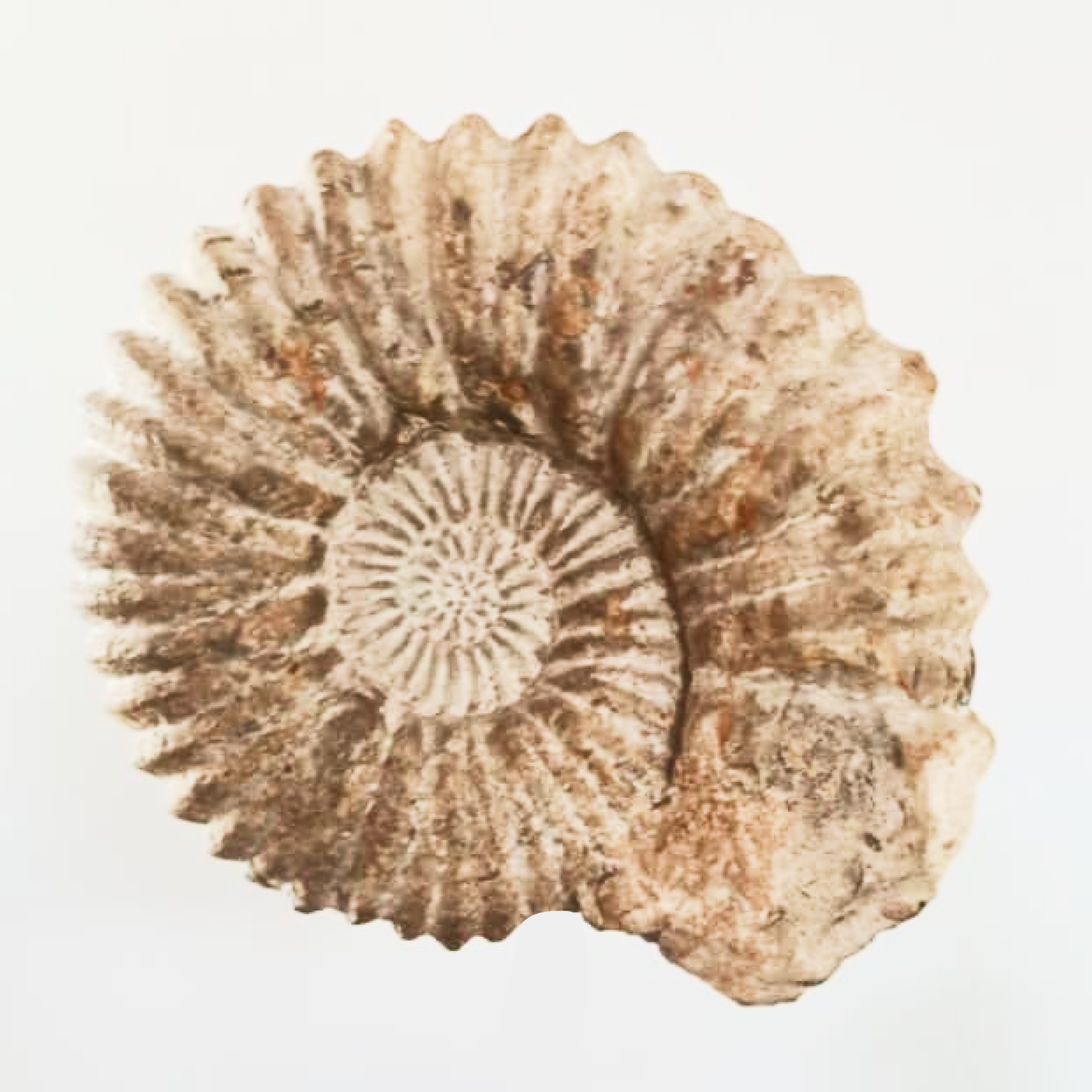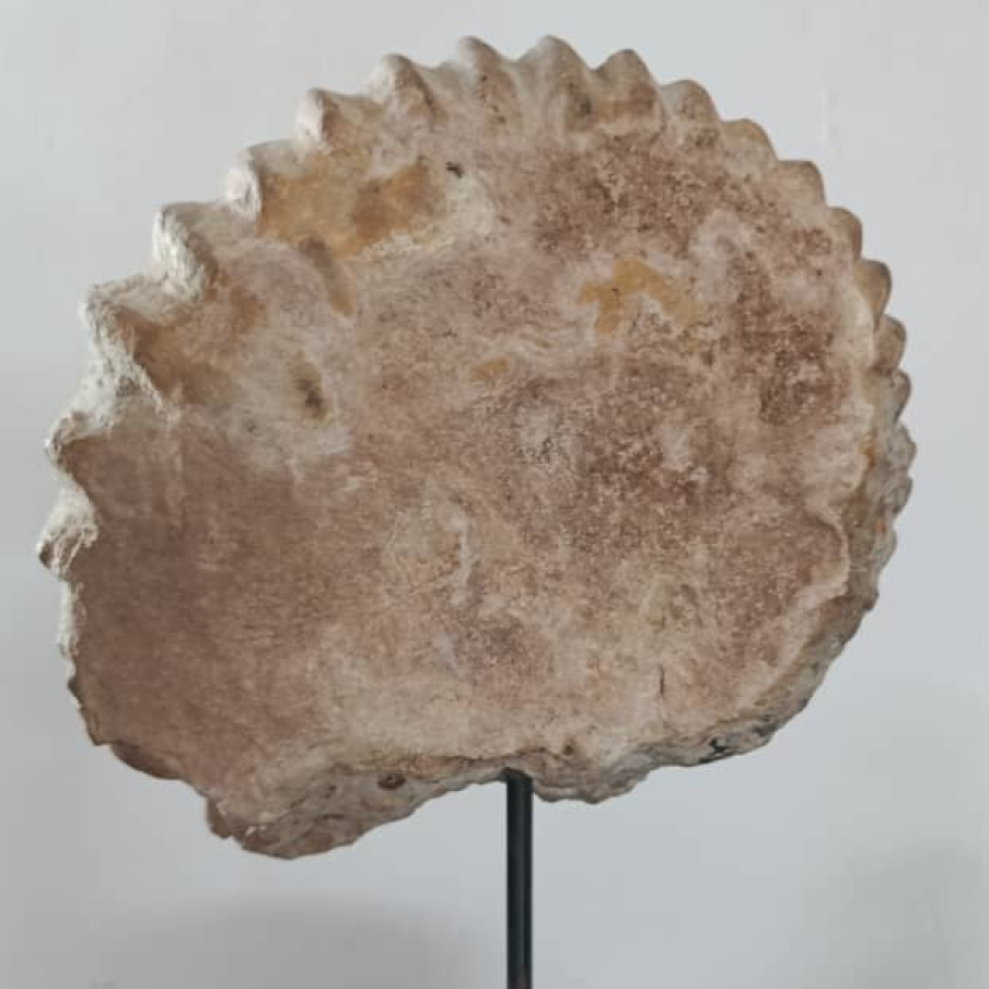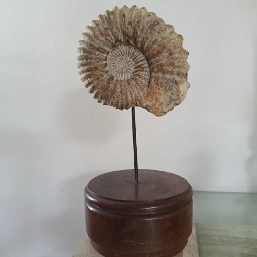 Gracias a su rápida evolución y a su amplia distribución geográfica, los amonites se consideran fósiles guía, fundamentales para geólogos y paleontólogos en la datación de estratos rocosos. Este ejemplar conserva detalles de mineralización en tonos naturales, lo que realza su atractivo visual y su autenticidad.