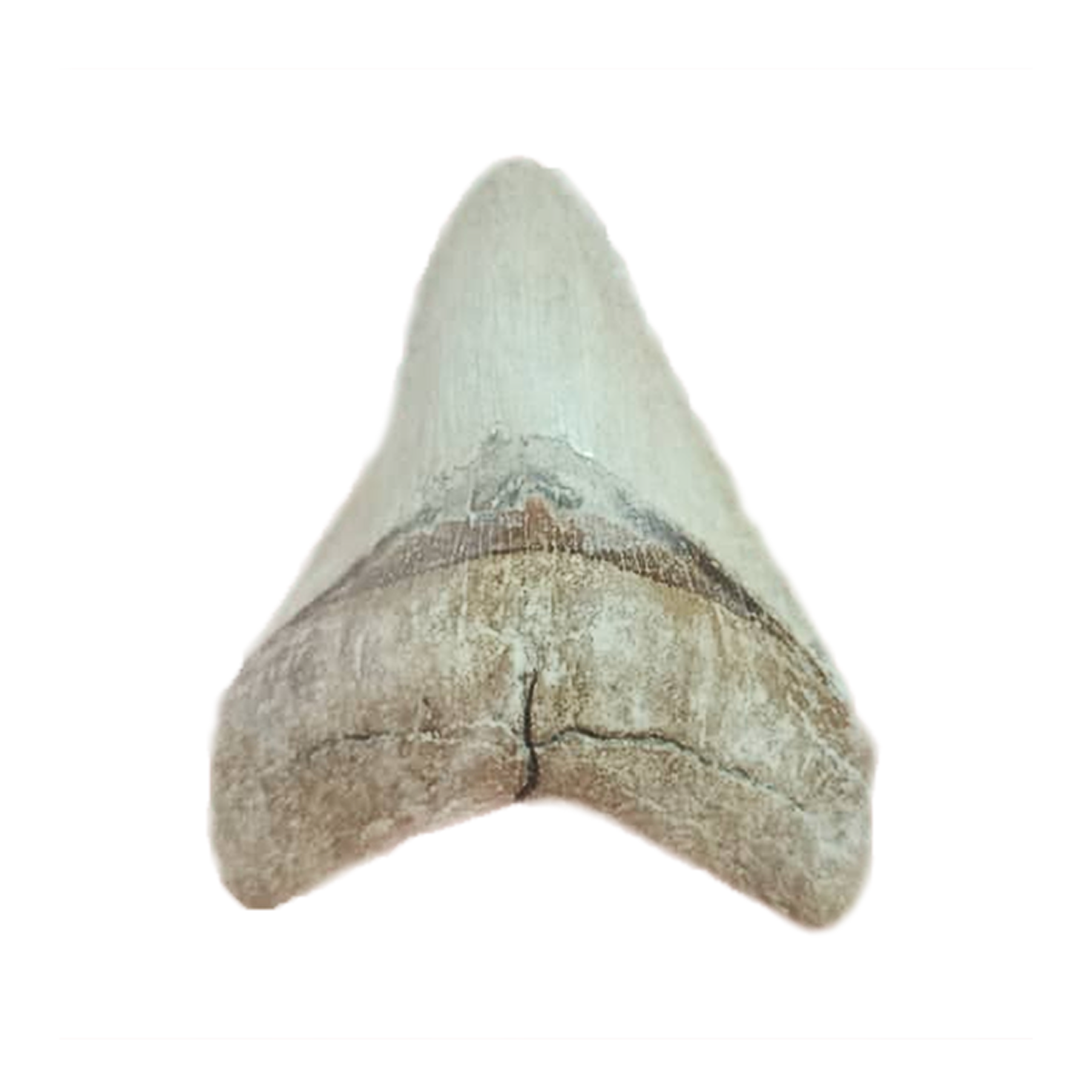 Fósil auténtico de diente de Megalodón, con una altura de 3.75″ (9.5 cm aprox). Esta pieza única conserva la forma triangular y robusta que caracteriza a uno de los depredadores más temidos del océano prehistórico. Su superficie muestra vetas naturales, bordes serrados parcialmente visibles y una coloración mineralizada que varía entre tonos grisáceos, marrones y ocres, dependiendo del sedimento en el que fue hallado.