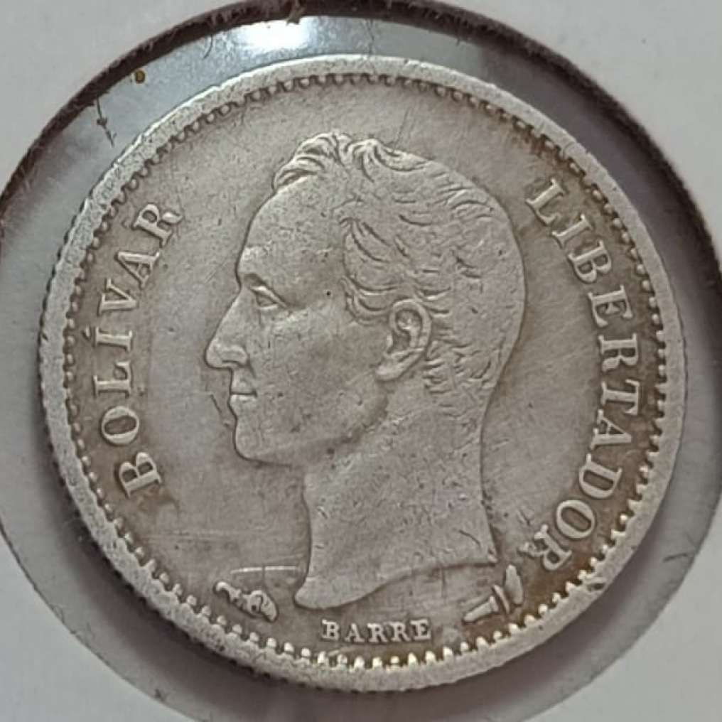 Fabricada en plata ley 0.835, con un peso de 1.25 gramos y diámetro de 15.9 mm, esta moneda combina precisión técnica con una estética sobria y republicana. El anverso presenta el escudo nacional rodeado por la leyenda “ESTADOS UNIDOS DE VENEZUELA · GR.1.250 · LEI 835 ·”, mientras que el reverso muestra el busto de Simón Bolívar